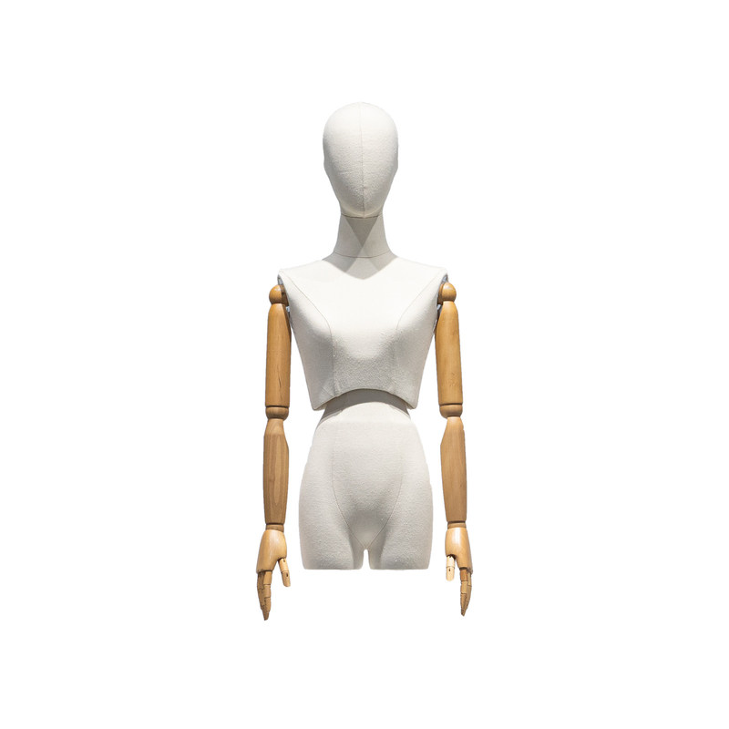 Nous sommes honorés de vous présenter ce modèle féminin à demi-corps avec une taille tordue, une tête et des bras en bois.Son design unique et son savoir-faire exquis offrent un style saisissant pour votre mode et votre marque.Ce modèle féminin à demi-corps souligne la fusion de la mode et de l'art avec son design de taille tordu.Cet élément de conception donne au modèle un sentiment de dynamisme et de fluidité, ajoutant des effets dynamiques et vifs aux vêtements exposés.En même temps, il est équipé d'une tête et de bras en bois, ce qui rend le modèle plus proportionné et réaliste, ce qui peut mieux mettre en valeur l'effet d'usure du vêtement.
